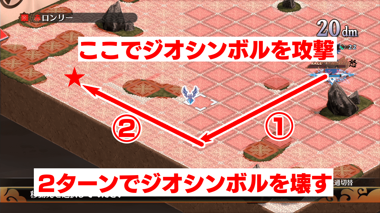 4-5では、ステージ上に1体しかキャラを出せないジオシンボルが貼られているため、ステージ左奥に置かれているジオシンボルを壊そう。移動7の味方に銃を装備させれば、2ターンでジオシンボルを壊せる。ピリリカにスリッパ3足とエビルガンを装備させると簡単に条件を満たせるのでおすすめだ。