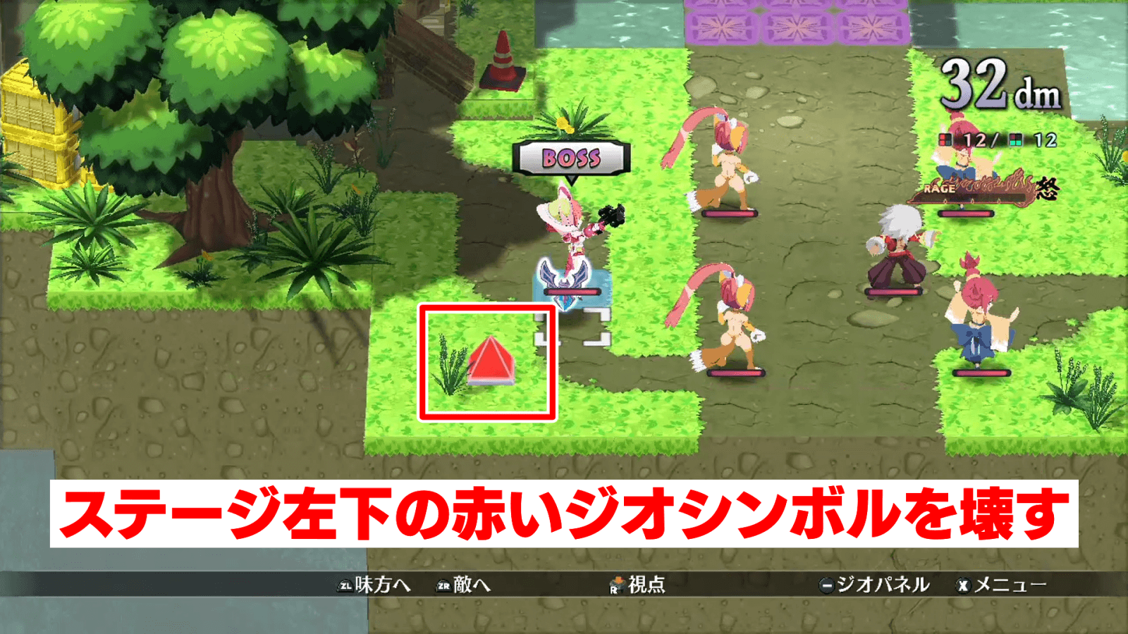 ステージ左下の赤いジオシンボルを壊す