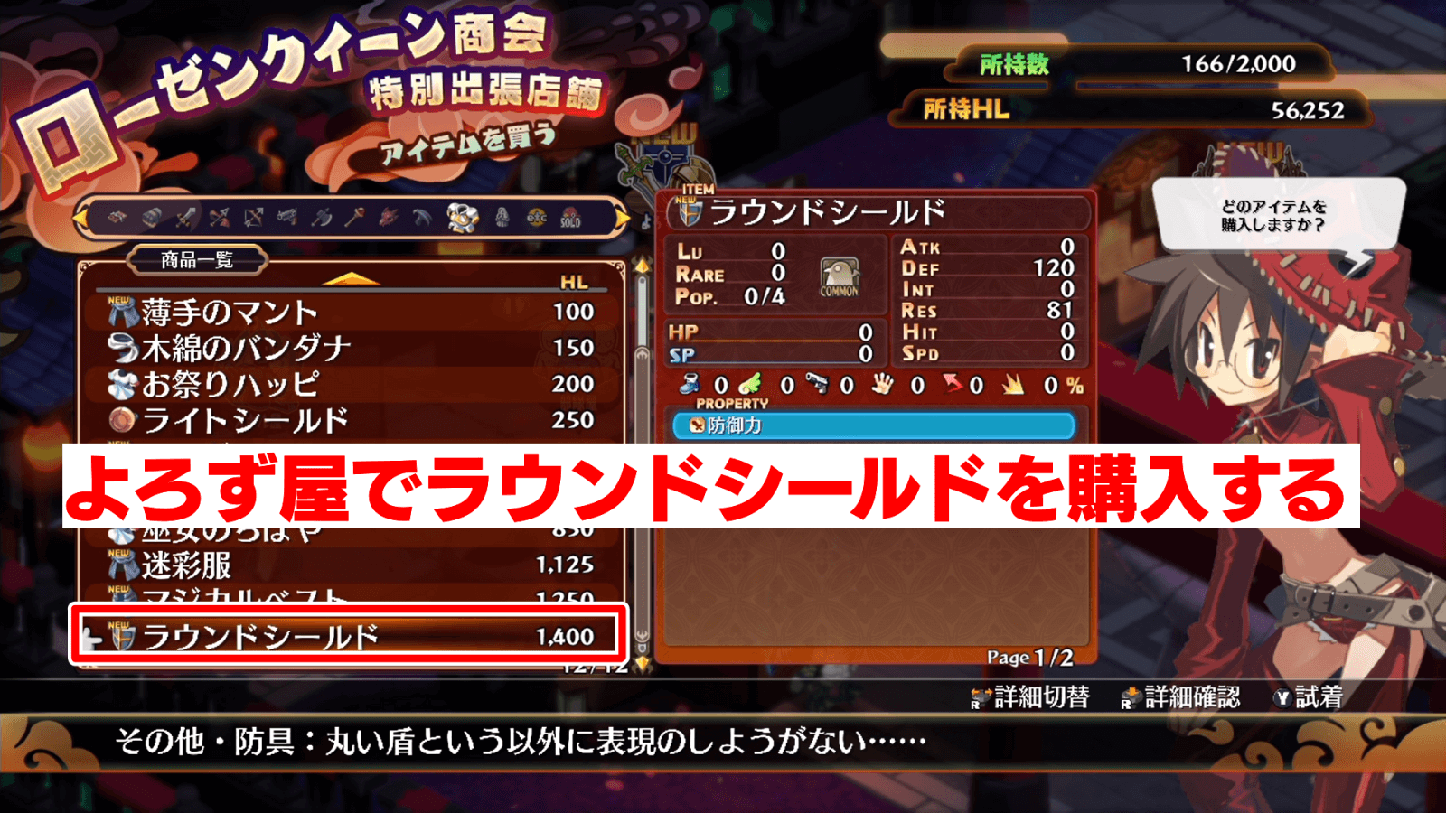 よろず屋でラウンドシールドを購入する