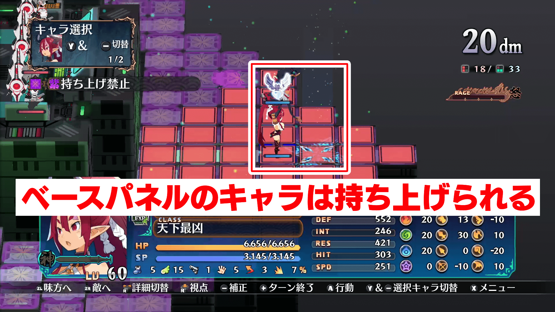 9-5は紫のジオパネルが持ち上げ禁止になっているが、ベースパネルに立っているキャラは持ち上げられる。前線に出したいキャラは、ベースパネルから持ち上げて前線に投げよう。