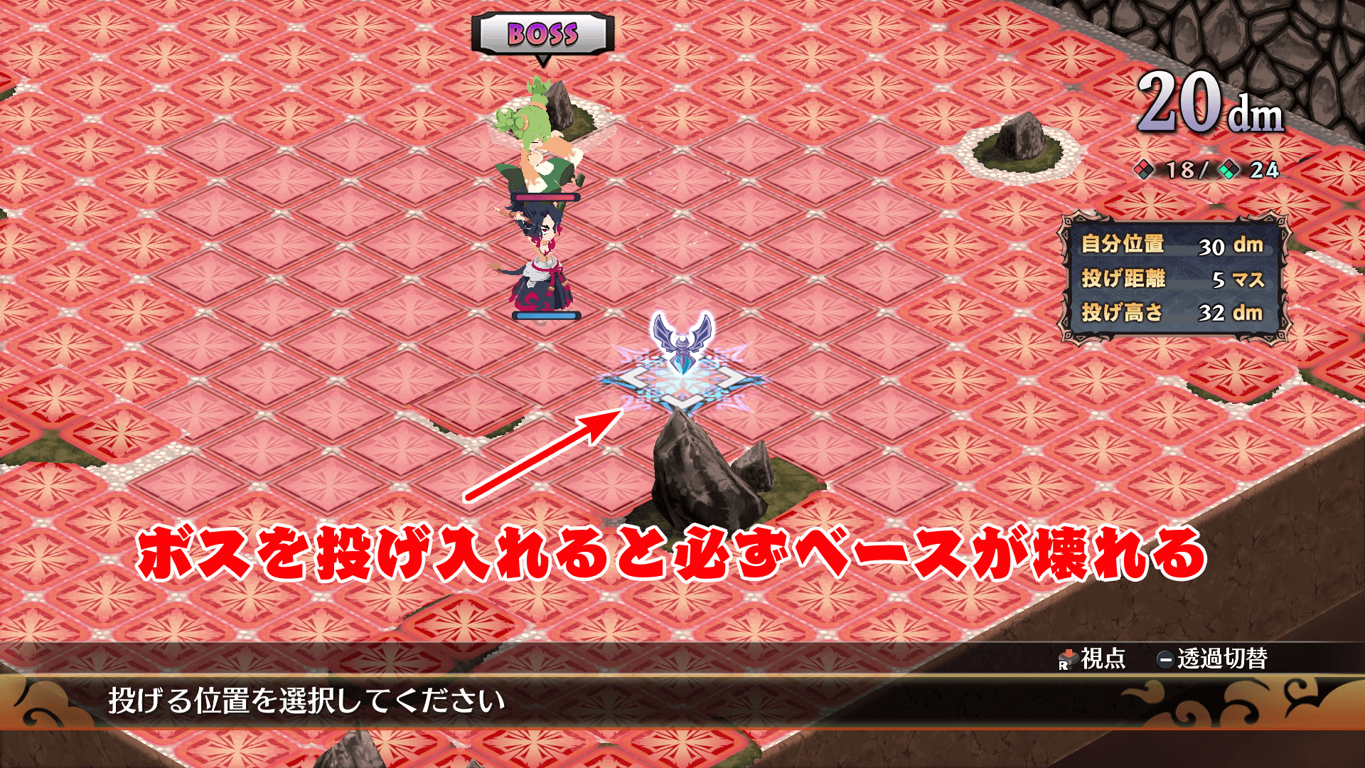 | ベースにボスを投げ込む魔ビリティが揃わない序盤向けの手段時間はかかるが、ベース内キャラを全滅できる |