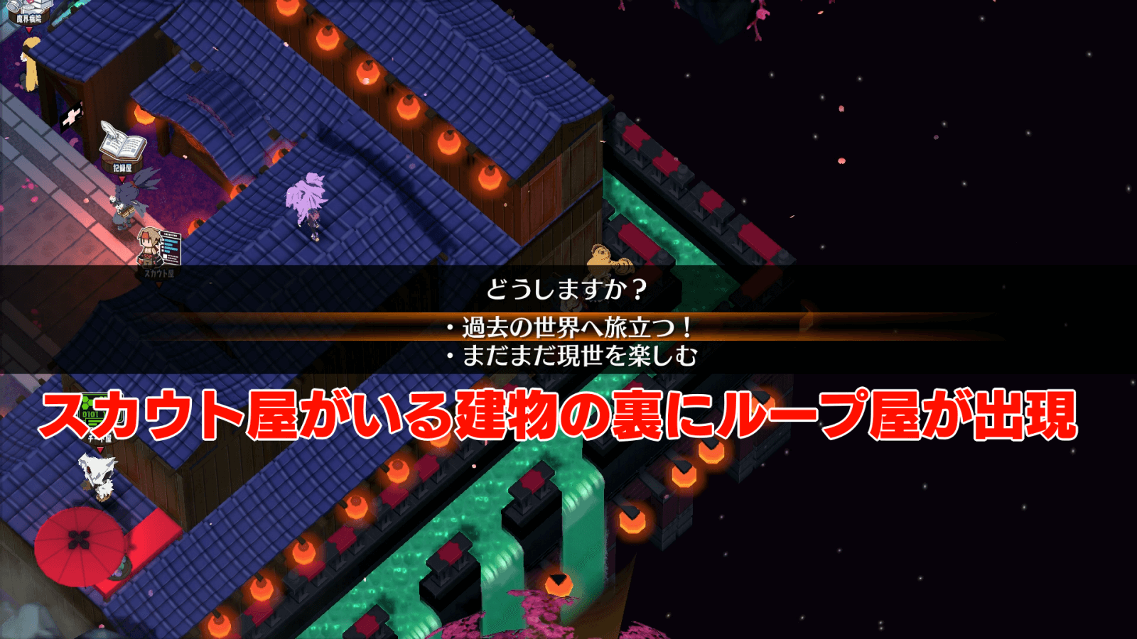 救済策として、本編クリア後はループ屋を使うことでストーリー進行を巻き戻し、バッドエンドを見直すことはできる。ただし、バッドエンドを見る以外のメリットがほぼ存在しないため、基本的にループ屋を活用する価値は低い。どうしても見逃しが気になる時だけ活用し、見終わったら元のデータに戻ってくるのがおすすめだ。