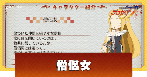 ディスガイア7のキャラクター「僧侶女」を解説!僧侶女の装備適性や耐性、ウェポンマスタリーや神討モード、魔ビリティーや特殊技、解放条件を掲載しているので、『魔界戦記ディスガイア7』をプレイする際の参考にどうぞ。
