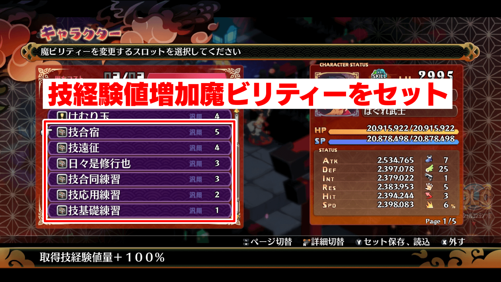 | 技経験値アップ系魔ビリティーをセットする |