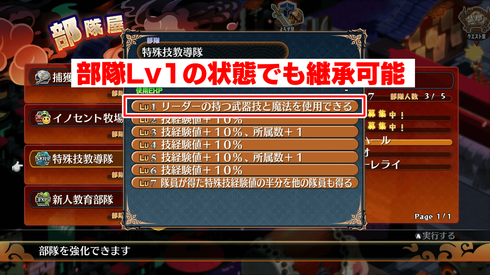 | 部隊の解放条件とメリット |