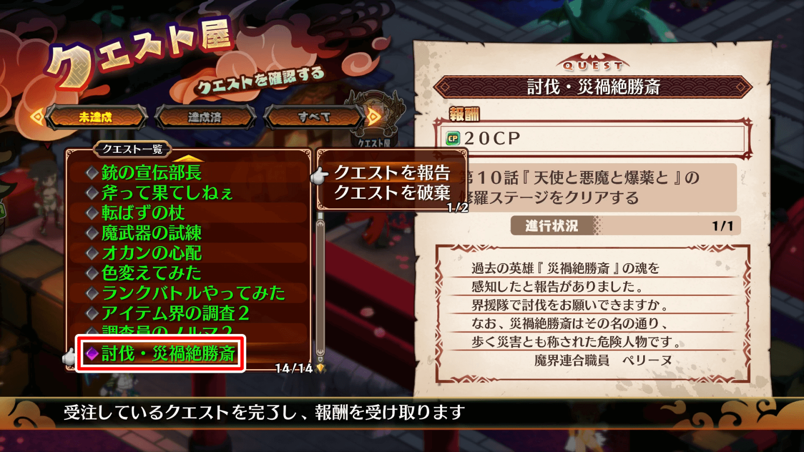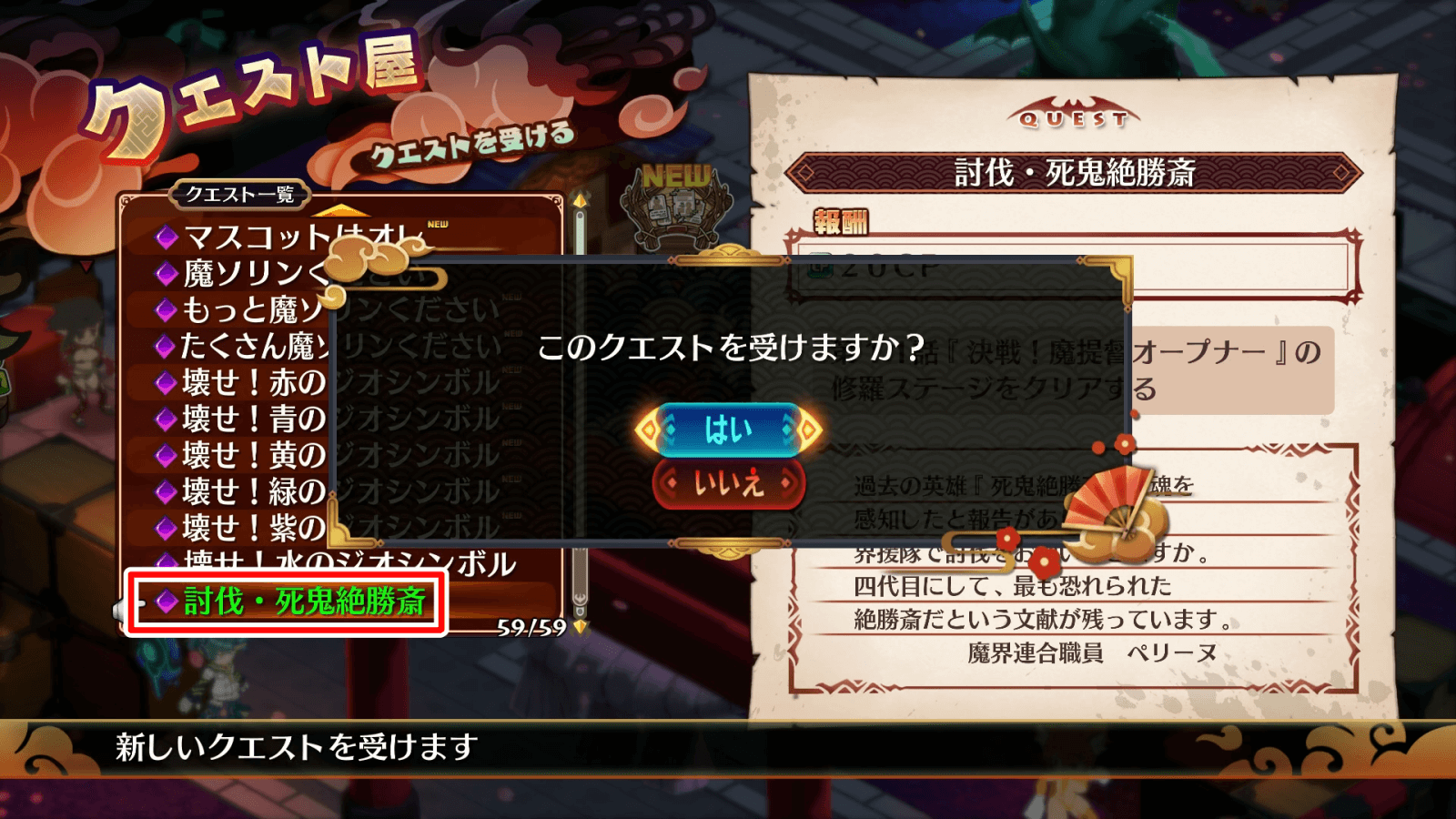 1クエスト屋で絶勝斎クエストを受注する