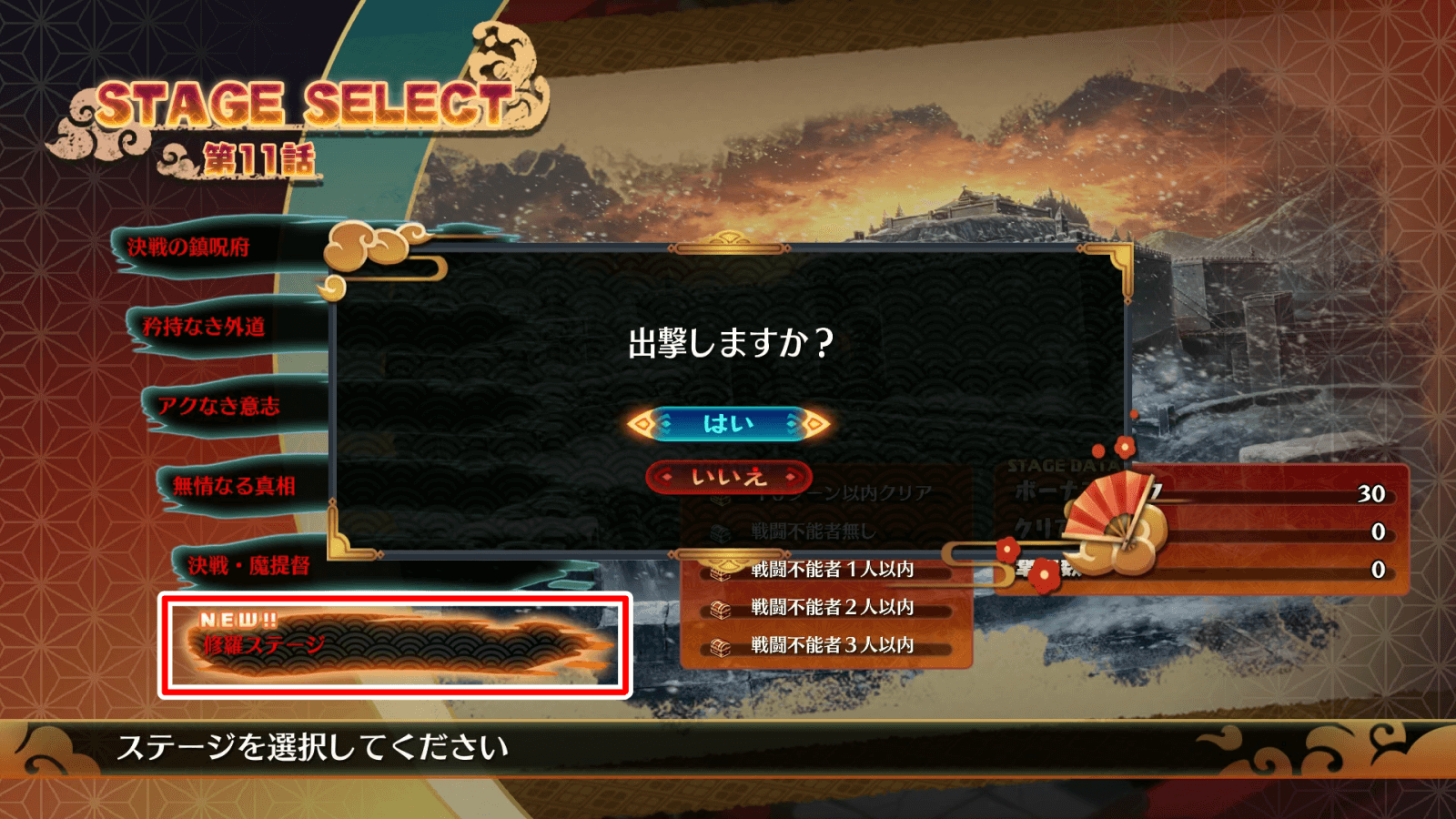 2出現した修羅ステージをクリアする
