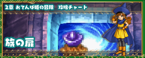 ドラクエ4(ドラゴンクエスト4)のアリーナ編で行ける拠点、「旅の扉」の2章攻略チャートを掲載。探索にて拾えるもの、ショップの販売品なども紹介。2章の「旅の扉」を攻略・探索する際の参考にどうぞ。