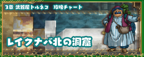 ドラクエ4(ドラゴンクエスト4)のトルネコ編で行けるダンジョン、「レイクナバ北の洞窟」の3章攻略チャートを掲載。探索にて拾えるもの、出現するモンスターの一覧なども紹介。3章の「レイクナバ北の洞窟」を攻略・探索する際の参考にどうぞ。