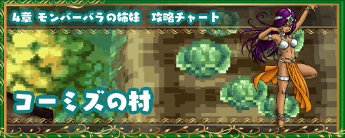 ドラクエ4(ドラゴンクエスト4)のマーニャ&ミネア編で行ける拠点、「コーミズの村」の4章攻略チャートを掲載。探索にて拾えるもの、ショップの販売品なども紹介。4章の「コーミズの村」を攻略・探索する際の参考にどうぞ。