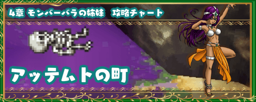 ドラクエ4(ドラゴンクエスト4)のマーニャ&ミネア編で行ける拠点、「アッテムトの町」の4章攻略チャートを掲載。探索にて拾えるもの、ショップの販売品なども紹介。4章の「アッテムトの町」を攻略・探索する際の参考にどうぞ。