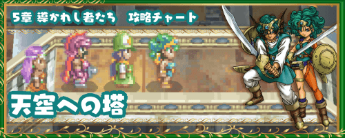ドラクエ4(ドラゴンクエスト4)の5章で行けるダンジョン、「天空への塔」の攻略チャートを掲載。探索にて拾えるもの、出現するモンスターの一覧なども紹介しているので、5章「天空への塔」を攻略・探索する際の参考にどうぞ。