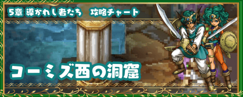 ドラクエ4(ドラゴンクエスト4)の5章で行けるダンジョン、「コーミズ西の洞窟」の攻略チャートを掲載。探索にて拾えるもの、出現するモンスターの一覧なども紹介。5章の「コーミズ西の洞窟」を攻略・探索する際の参考にどうぞ。
