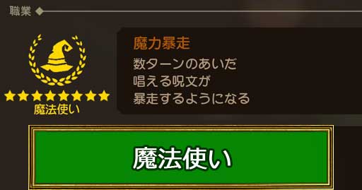 魔法使いの職業とくせい「魔力暴走」は、数ターンの間唱える呪文が暴走して威力が大きく上がる技です。強敵との戦いで一気に火力を出したい時に使う運用が効果的です。