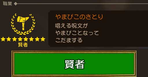 賢者の職業とくせい「やまびこのさとり」は、バースト時にかならず呪文を2回うてる技です。属性呪文で瞬間火力を出す使い方の他、ベホマラー2回でHPを1発で全快近くにする運用にも使えます。