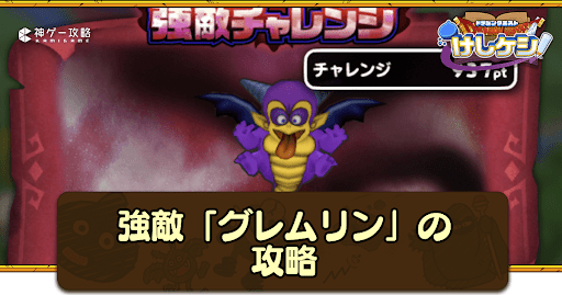 ドラ消し(ドラクエけしけし)の強敵チャレンジ「グレムリン」の攻略情報を掲載!強敵チャレンジの仕様やステージ情報、獲得ポイントやドロップ情報についても解説しているため、ドラ消し(ドラクエけしけし)の攻略の参考にどうぞ!