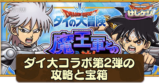 ドラ消し(ドラクエけしけし)のダイ大コラボ第2弾(ダイの大冒険コラボ)イベントの攻略情報を紹介。イベントの最新情報や宝箱の解放条件、強敵チャレンジや周回情報もしているため、ドラ消し攻略の参考にどうぞ。