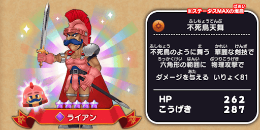 | 不死鳥のように舞う華麗な剣技で、六角形の範囲に物理攻撃でダメージを与える 威力81 | ||