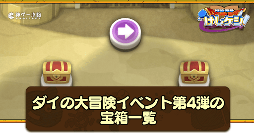 ドラ消し(ドラクエけしけし)のダイの大冒険コラボイベント第4弾の宝箱について紹介。イベントの宝箱の場所や解放条件、隠しステージついても掲載しているため、ドラ消し攻略の参考にどうぞ。
