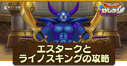 ドラ消し(ドラクエけしけし)のバトケシにおけるエスタークとライノスキング戦について紹介!エスタークとライノスキング攻略ポイントやおすすめ編成、ボスのステータスや報酬も掲載しているため、ドラ消し攻略の参考にどうぞ!