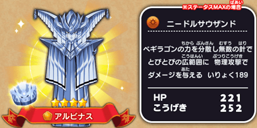 ドラ消し(ドラクエけしけし)のキャラ「アルビナス」について紹介。アルビナスの評価や性能、スキルの範囲、入手方法、プロフィールについても掲載しているため、ドラ消し攻略の参考にどうぞ!