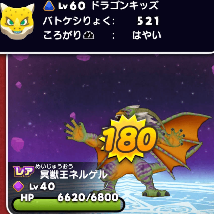 レア敵の冥獣王ネルゲルは、物理攻撃以外に耐性を持っているため、呪文やブレス攻撃ではなく物理攻撃持ちのキャラをアタッカーに入れよう。バトケシ力はほぼ同じの、攻撃威力とスキルレベルが同じキャラでダメージ検証をした結果、物理ダメージの方がダメージは高くなった。