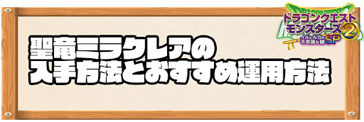 『イルルカSP』における「聖竜ミラクレア」の情報を掲載。聖竜ミラクレアの配合表をはじめ、入手方法や素材にするモンスター、ステータスなども記載しているため、イルルカSPの攻略の参考にどうぞ!