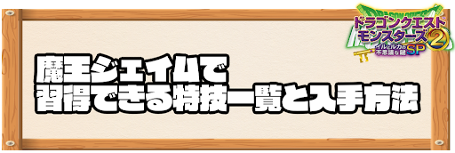 魔王ジェイムは、上記のモンスターが所持している。また、上記のモンスターを新生配合で作成すると、魔王ジェイムが初期スキルとなる。