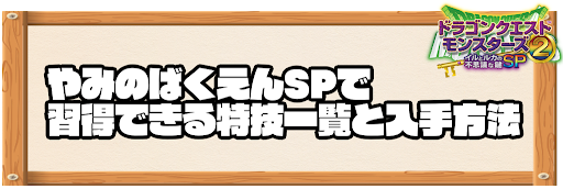 『イルルカSP』における「やみのばくえんSP」を解説。やみのばくえんSPで習得できる特技と特性、やみのばくえんSPを習得しているモンスターやスキルの入手方法について記載しているため、イルルカSP攻略の参考にどうぞ!