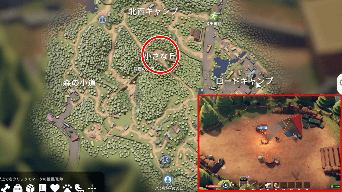 エリアゼロの謎の商人は、マップ中心部の小さな丘に居る。バンカーから歩いていくのが近い。