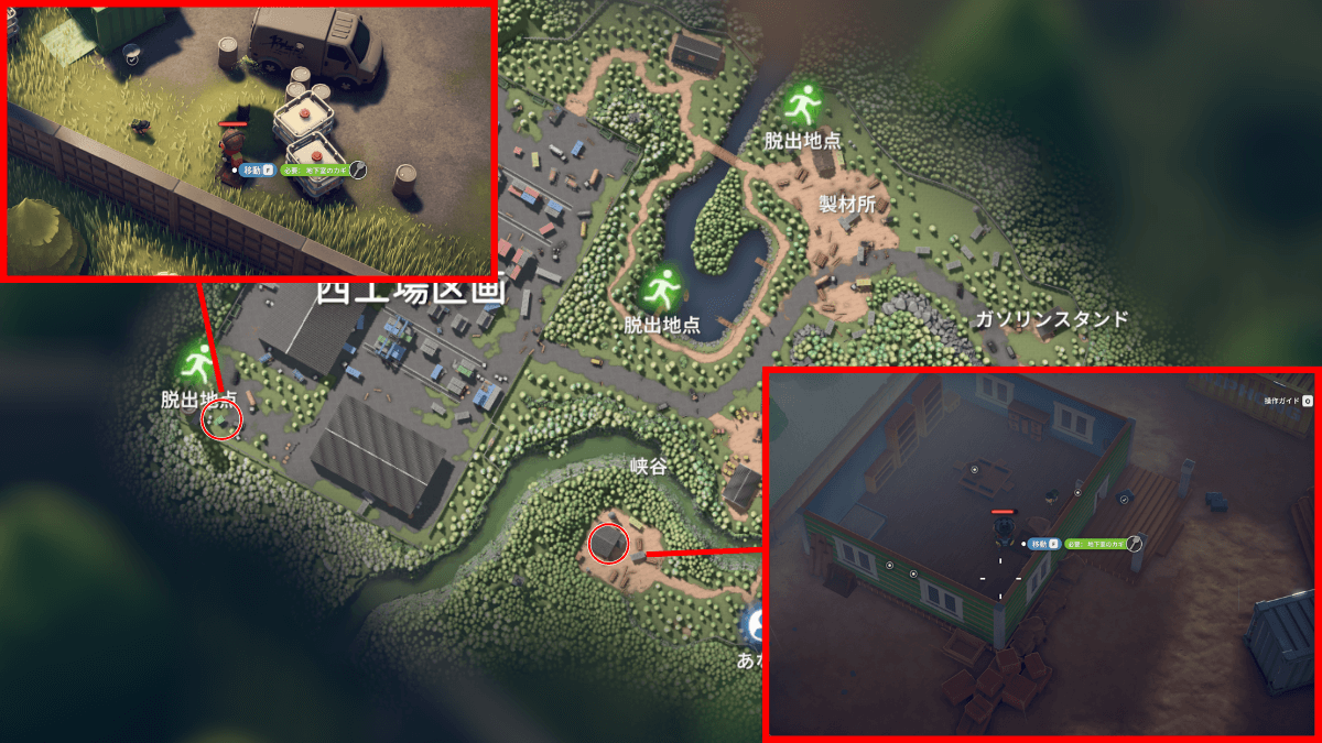 倉庫エリアの露店商人は地下室におり、マップ左上かマップ左下の民家にある地下への入口から進める。地下へ進むのに「地下室のカギ」が、露天商人へ会うのに「地下室の分かれ道のカギ」が必要だ。なお、地下通路内にはガスが充満しており、ガスマスクがないと毒状態になって死亡してしまう。