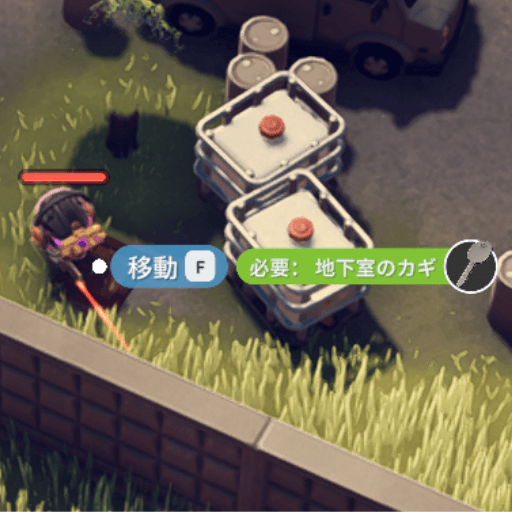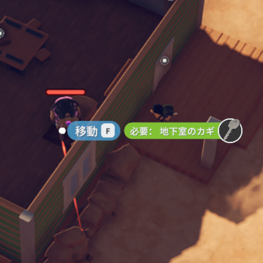 地下室のカギは、倉庫エリアで使用できる。内部には毒ガスが漂っているため、毒対策をしておこう。