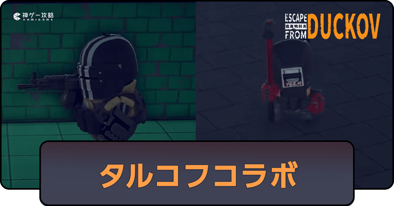 エスケープフロムダッコフのタルコフコラボについて掲載。タルコフ(Excape from Tarkov)コラボ最新情報や新要素の解説、新マップやボスの攻略についてと、アップデート内容も解説しているため、ダッコフでコラボ内容について知りたい時の参考にどうぞ。