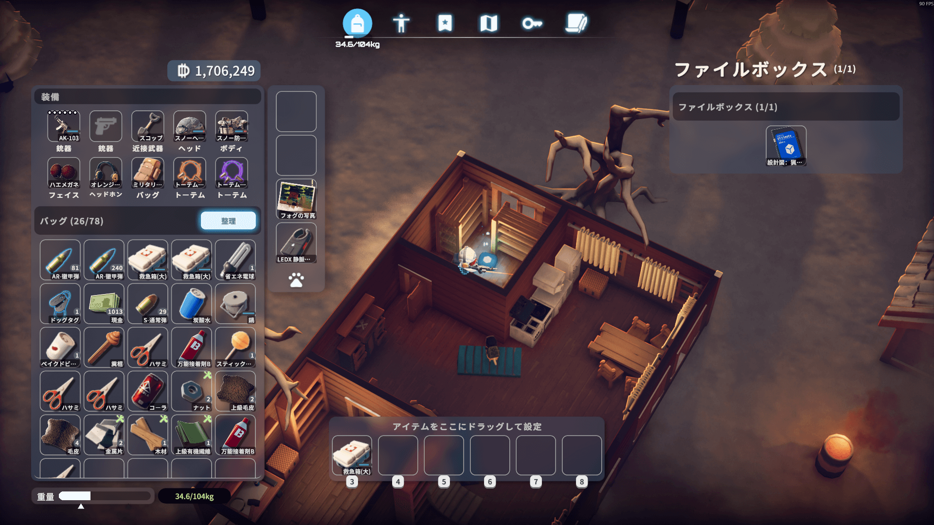 バンカー内の映像でアイテムを置いた棚とガンラックが表示されていた。レアなアイテムを飾り、スクリーンショット機能でSNSへ投稿しよう。