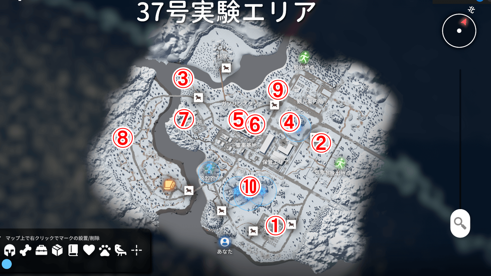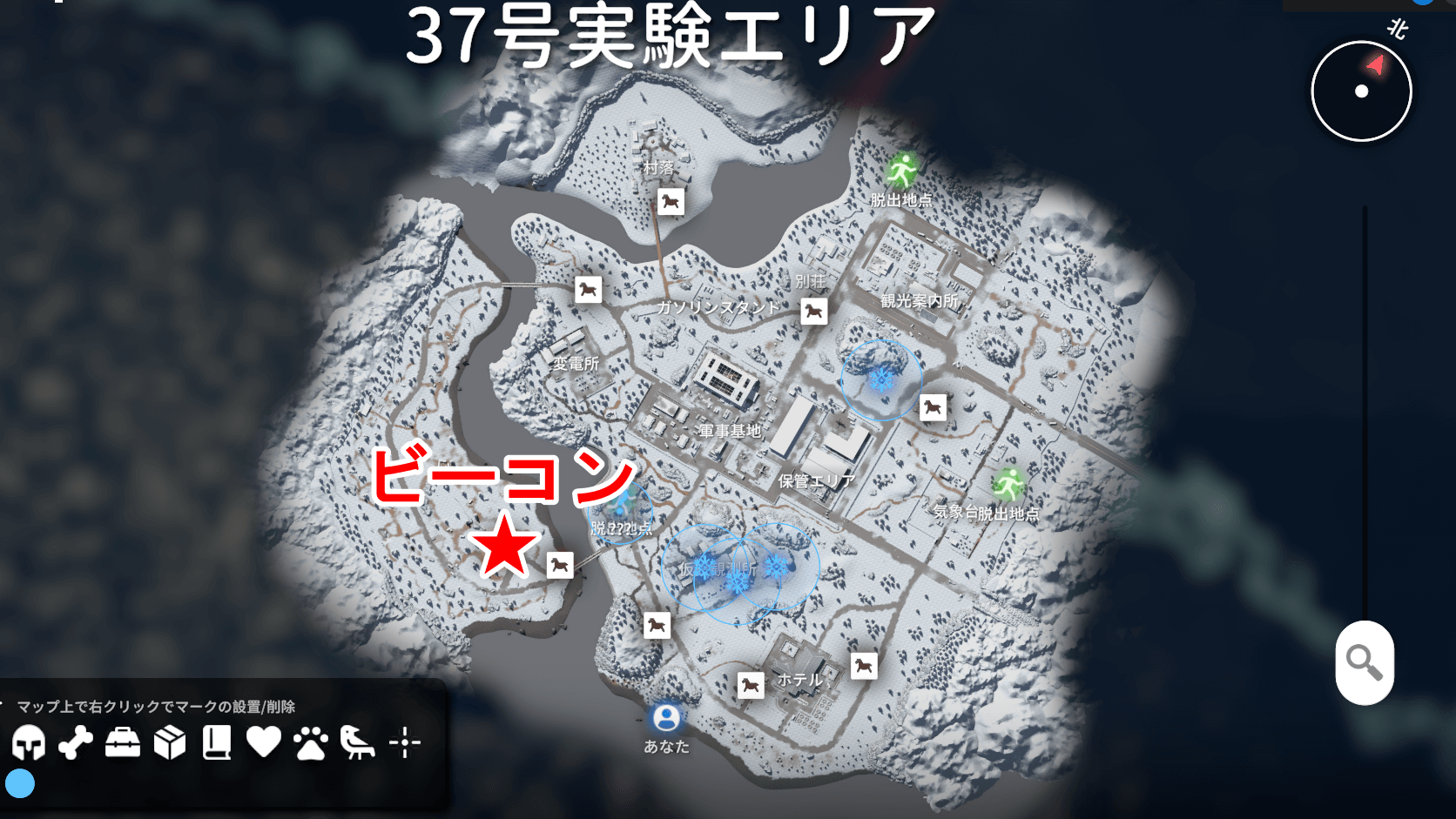 37号実験エリアに辿り着いたら、まずは南西にあるクエストマークの場所へ向かおう。該当場所は「救難信号-2」の指定場所で、ビーコンも設置してある。また、指定場所に訪れる際はマイナスドライバー1個とポリエチレンシート4個を持参するのがおすすめ。