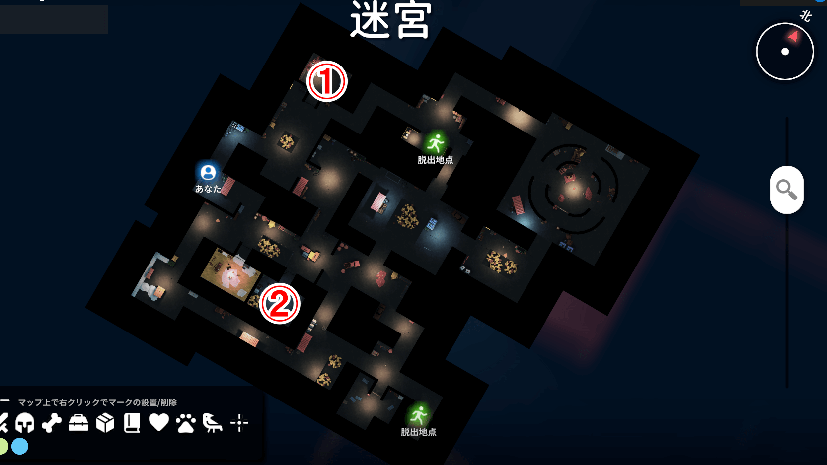 ④の地下部屋に入り開けた場所まで進むと、前後から大量のゾンビが遅い掛かってくる。上記動画はライフル拡張マガジンを装備したMFを使用。