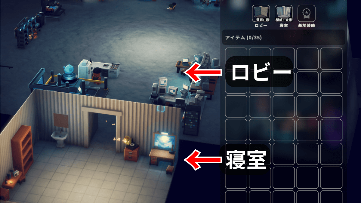 | 設定項目 | ・ロビー ・寝室 ・基地装飾 |