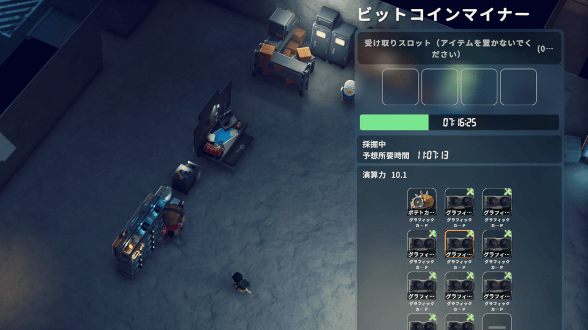 3Dプリンターの建設に必要なグラフィックカードはビットコインマイナーでビットコインを生成するのに使用するアイテムのため、ビットコイン分のグラフィックカードがあるなら建設がおすすめ。3Dプリンター建設でグラフィックカードがなくなってしまう場合は非推奨だ。