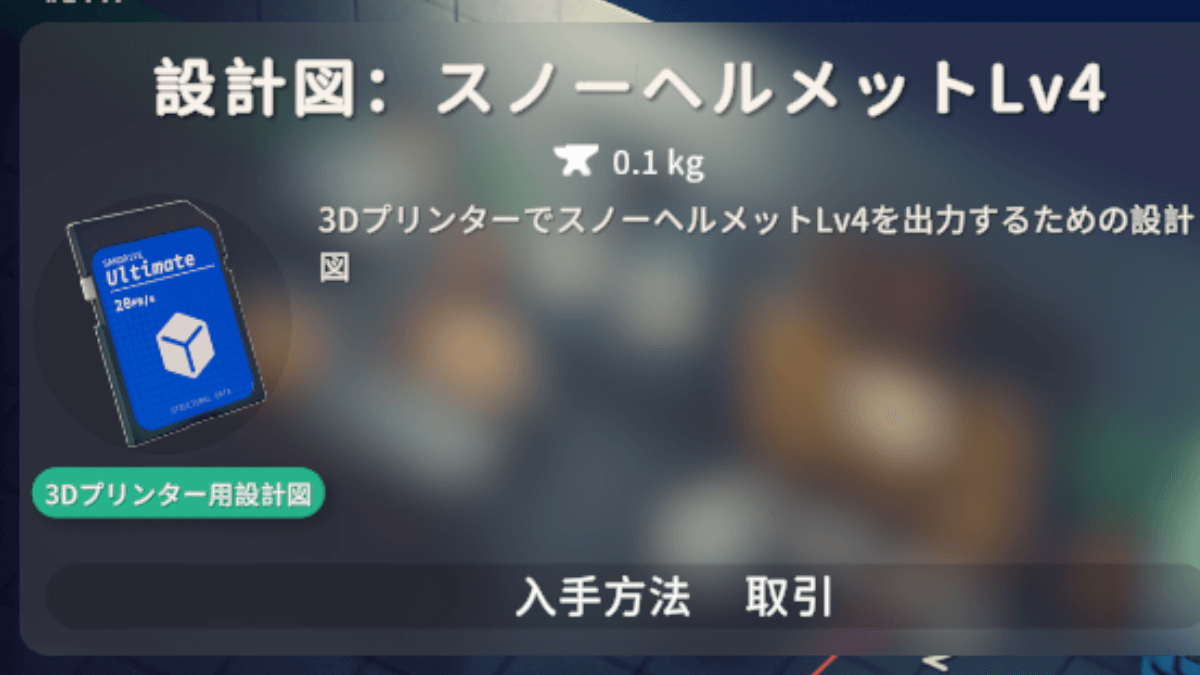 3Dプリンターでは、防寒対策用のスノー系装備を作成できる。また、新エリア「37号実験エリア」にて、3Dプリンターで作成可能な装備品のモジュール系レシピを入手可能だ。
