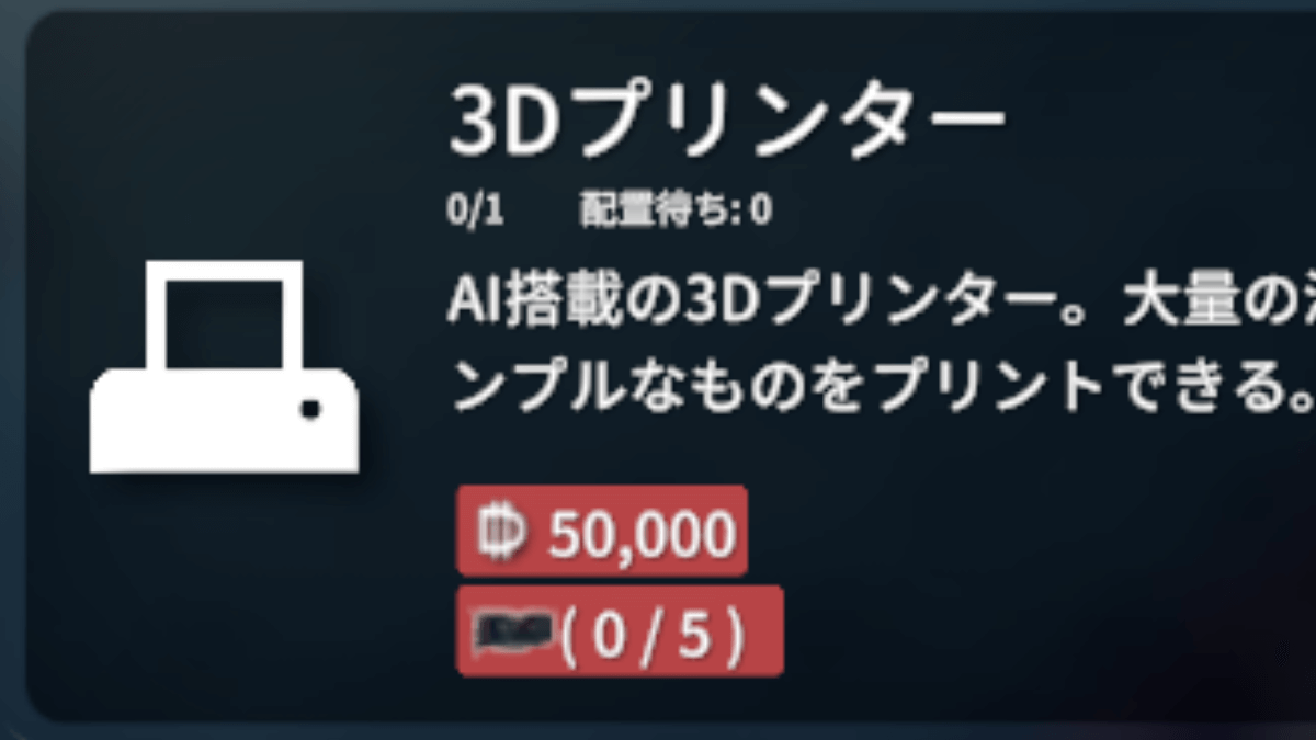エスケープフロムダッコフの建設で建てられる「3Dプリンター」について掲載。3Dプリンターで作成できるアイテムや建設に必要な素材、建設の優先度についても解説。ダッコフで3Dプリンターについて知りたい時の参考にどうぞ。