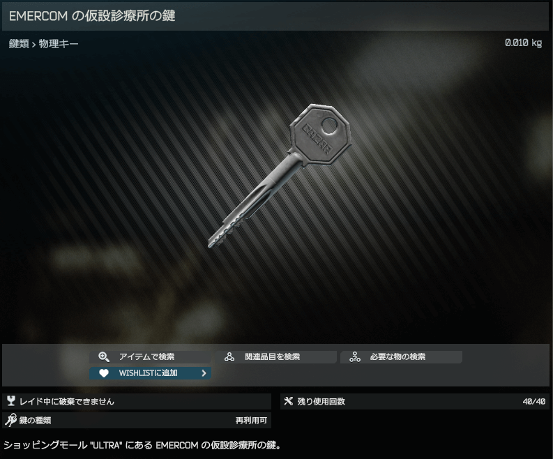 【タルコフ】EMERCOM medical unit keyの使用場所と入手方法