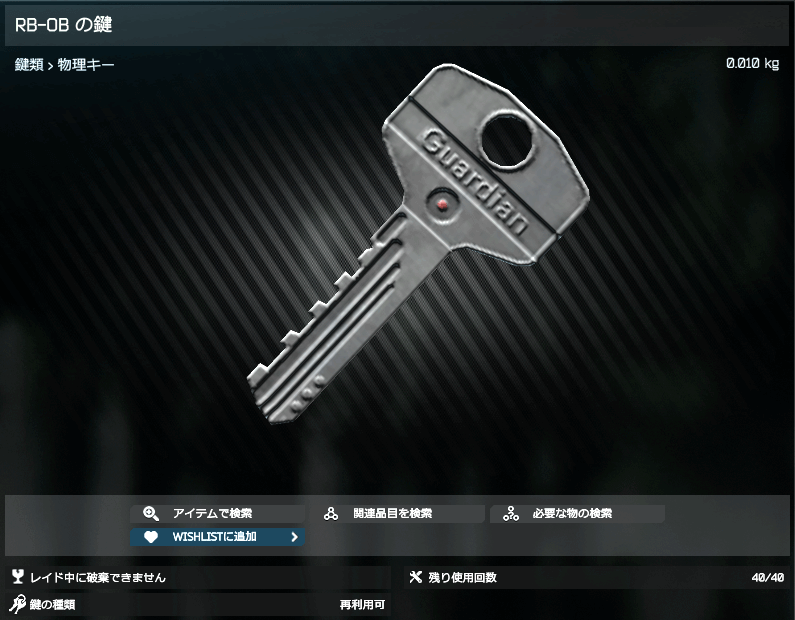 【タルコフ】RB-OB keyの使用場所と入手方法