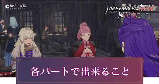 ファイアーエムブレム無双 風花雪月における、各パートの違いとできることを掲載。軍備パート、進軍パート、戦闘パートの違いや、できることをそれぞれまとめているので、FE無双 風花雪月を攻略する際の参考にどうぞ。