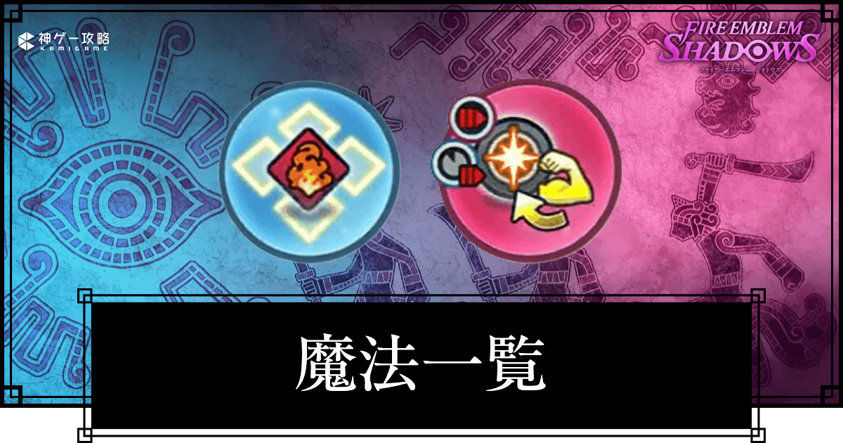 FEシャドウズの魔法一覧です。固有魔法と光魔法・闇魔法に分類した上で、所持者と効果を紹介しています。