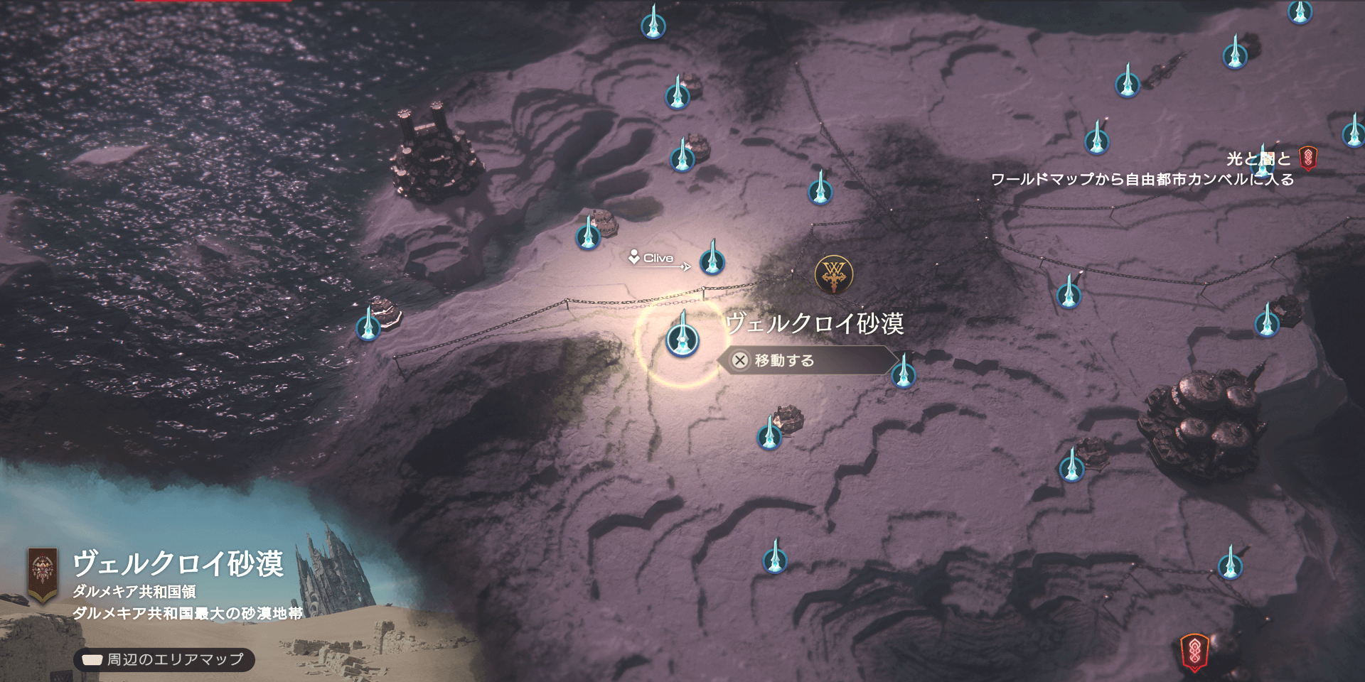 【FF16】ヴェルクロイ砂漠のマップと入手アイテム