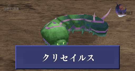 FF4(ファイナルファンタジー4)のモンスター「クリセイルス」のステータスと出現場所を紹介。HPや弱点、獲得経験値や入手ギルをまとめて掲載。ドロップするアイテムや盗めるアイテムも紹介しているので、攻略の参考にどうぞ。