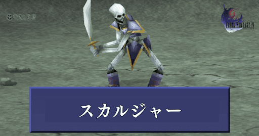 FF4(ファイナルファンタジー4)のモンスター「スカルジャー」のステータスと出現場所を紹介。HPや弱点、獲得経験値や入手ギルをまとめて掲載。ドロップするアイテムや盗めるアイテムも紹介しているので、攻略の参考にどうぞ。