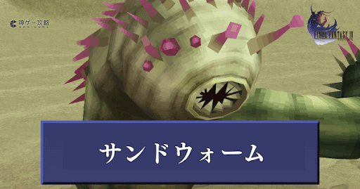 FF4(ファイナルファンタジー4)のモンスター「サンドウォーム」のステータスと出現場所を紹介。HPや弱点、獲得経験値や入手ギルをまとめて掲載。ドロップするアイテムや盗めるアイテムも紹介しているので、攻略の参考にどうぞ。
