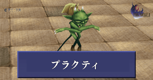 FF4(ファイナルファンタジー4)のモンスター「プラクティ」のステータスと出現場所を紹介。HPや弱点、獲得経験値や入手ギルをまとめて掲載。ドロップするアイテムや盗めるアイテムも紹介しているので、攻略の参考にどうぞ。