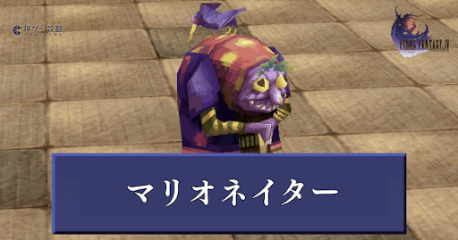 FF4(ファイナルファンタジー4)のモンスター「マリオネイター」のステータスと出現場所を紹介。HPや弱点、獲得経験値や入手ギルをまとめて掲載。ドロップするアイテムや盗めるアイテムも紹介しているので、攻略の参考にどうぞ。